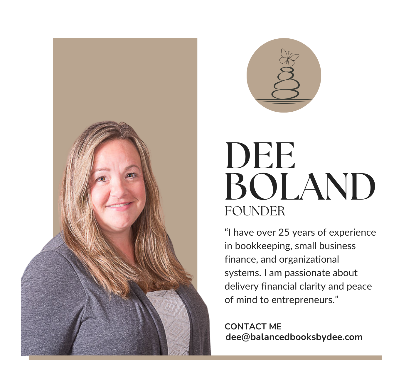 Dolores (Dee) Boland, Founder and Owner, believes that financial balance brings businesses clarity and peace of mind. With this in mind, Dee has crafted a personalized service that will ensure your bookkeeping is compliant and stress-free.